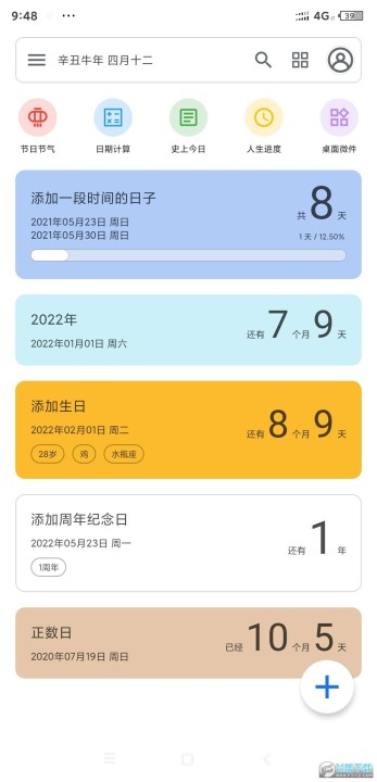 记得日子app是一款最新的记录日期时间的软件,软件中提供海量的功能内容等你体验,在这里你可以自定义设置想要纪念的日期,包括生日、结婚纪念日、其他临时日期等等。对软件感兴趣的话不妨点击下载试试!
