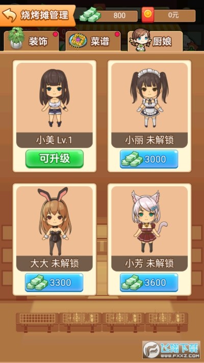 3、采用卡通可爱的画风,打造了一个鲜活的烧烤游戏。