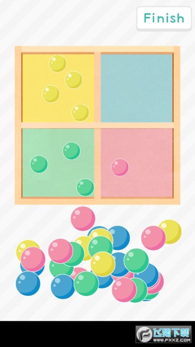 根据颜色将许多五颜六色的糖果状球分类到盒子中:黄色,蓝色,绿色和粉红色。喜欢组织的人们会喜欢将相同颜色的球放入一个盒子中。