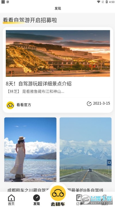 看看租车app是一款手机租车服务平台,为各位用户提供了各种类型的车辆租赁服务,还有不同时长租赁服务,在看看租车app上还有相关的旅游出行攻略等等,这里有专业的客服在线为你服务,任何问题都能在线咨询,快来下载吧!