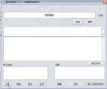 首先选择需要学习的词库,随后进入软件主界面。对于软件给出的单词,判断是否认识它的词义,如果不认识或不记得了, 就点击“错误”的按钮,反之点击“记得”的按钮,然后软件会显示出正确的词义,这时候再判断是否刚才的选项是否真的是对的, 如果是,再点击“正确”,如果不是,则点击“错误”,这样完成一个单词的学习; 软件接着给出下一个单词重复以上过程。