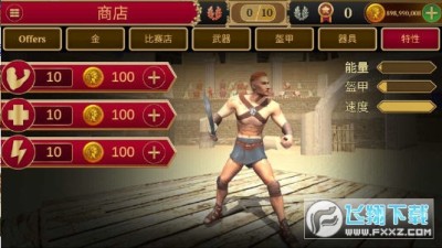 选择武器:一把剑,一把斧头,一把锤子和一把盾牌,准备战争!保护自己免受嗜血的敌人的攻击,选择你的道具,开始你的战斗,获得胜利可以获得更多的金币,使用金币可以定制属于你的角斗士并且升级你的武器,这款游戏是由虚拟摇杆控制的,开始你的动作。