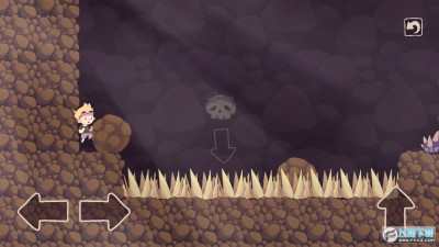 左下角的左右箭头指挥小男孩向左或者向右移动,右下角的向上箭头指挥小男孩向上跳跃,游戏中小男孩的路程会有相应的箭头指示,让玩家不至于走错路,石块可以帮助小男孩通过难关。
