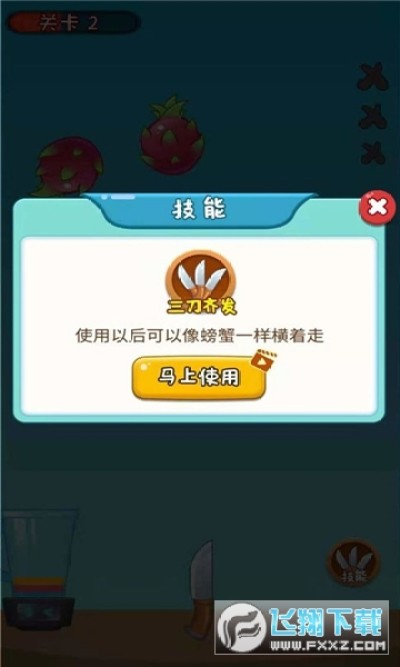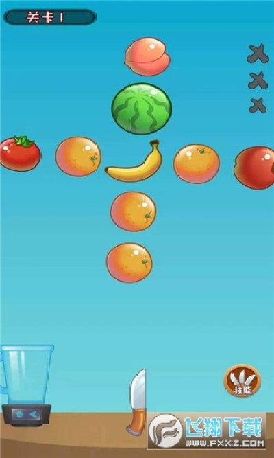 2、发射飞刀切割梨子、苹果等各种水果,在有限的次数内全部切割完,有着丰富的关卡可以挑战。