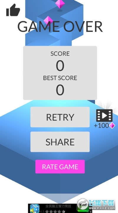 2、具有简单的玩法操作模式,控制好方块在道路上进行翻滚,躲避障碍物;