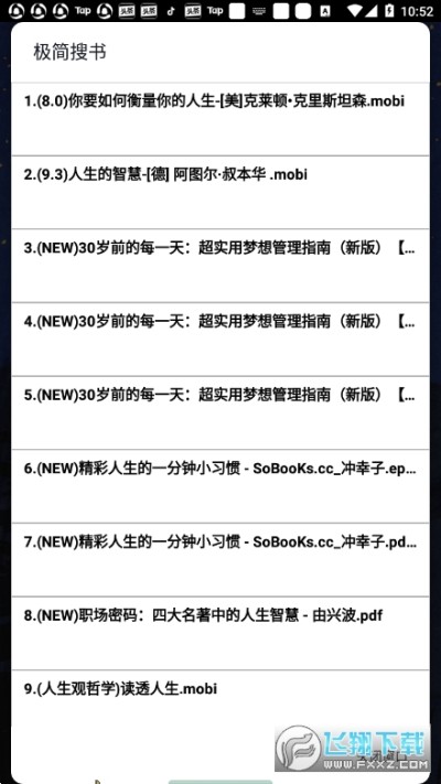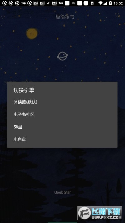极简搜书App是一款搜书专用软件,可以搜电子版书籍,作文范文,或者是习题,学习资料什么的好像也可以,自己探索啦,界面挺简洁的,点击飞船小图标可以切换源,App体积很小,只有1M多,几乎不占手机内存。