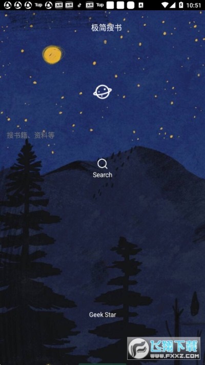 搜书用的,可以搜电子版书籍,作文范文,或者是习题,学习资料什么的好像也可以,自己探索啦,界面挺简洁的,点击飞船小图标可以切换源,App体积很小,只有1M多,几乎不占手机内存。
