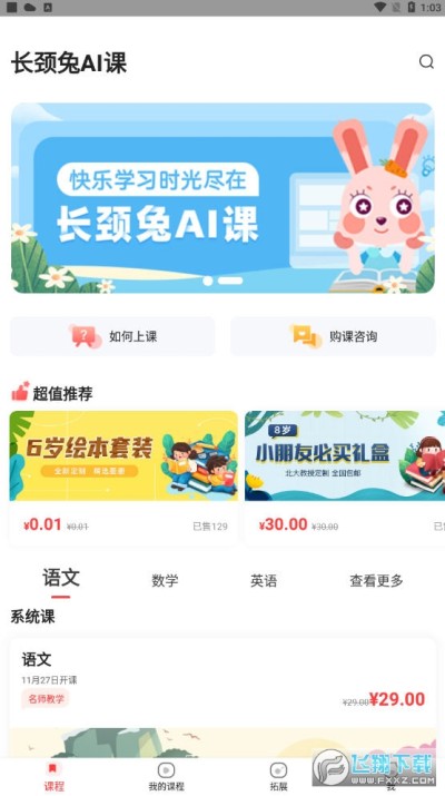 长颈兔AI课app是一款智能在线学习平台,这款软件给2-8的孩子打造的在线早教启蒙类的平台,提供了关于语文、数学思维、英语方面的早教课程,同时在长颈兔AI课app上还有多种动画、游戏的模式教学,更加有趣哦!