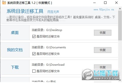 添加恢复模式,使用恢复模式打开程序一键恢复系统默认路径!修改路径时,提示文件是选择[复制]还是[移动]方式!