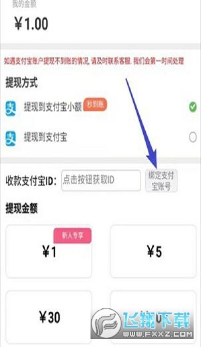 首次1元起提,后续5元起,点箭头所示的地方授权一下再提。秒到的。