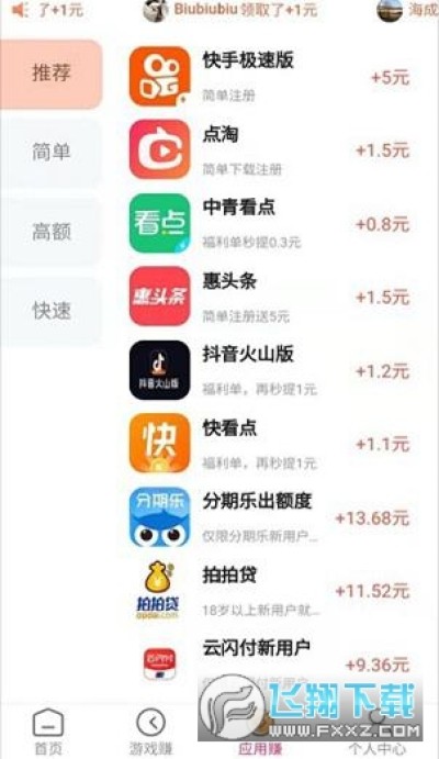 和转转互娱不同的是这个平台多了一些常见应用的试玩,如果里面有你没下载安装过的APP可以下载拿红包。