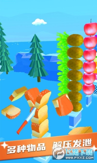 2、找对合适的机会,超前面的物品切下去,享受趣味的玩法,获取更高的分数。
