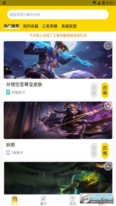 2、每日天天召唤app上签到赠送大量稀有卡,夺宝区丰富有趣的玩法更能轻松获得黑卡。