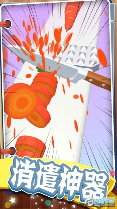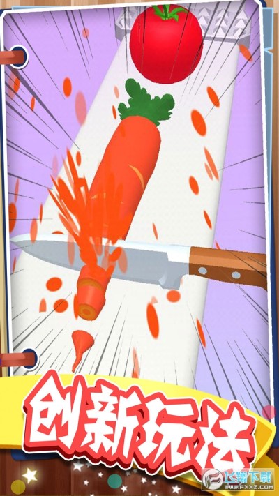 最强菜刀大师是一款非常解压的趣味休闲游戏,游戏玩法非常简单,玩家只需要点击屏幕,菜刀就能将他们切开,游戏画面非常惊艳,真实的果汁飞溅效果,多种食物等你解锁,快来和我成为最强切菜大师吧!