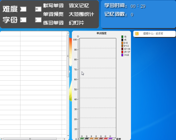 词义记忆部分,光标定位在输入框后,上光标显示中文,左光标表示你掌握该词汇,右光标表示未掌握