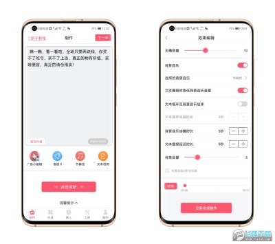ÎÒÃÇÖÆ×÷ºÃÒ»¸öÒôƵºó£¬µã»÷ÏÂÒ»²½£¬¾Í¿ÉÒԺϳÉÁË£¬ºÏ³É֮ǰÎÒÃÇ»¹¿ÉÒÔ½øÐÐ×îºóµÄµ÷Õû£¬±ÈÈç±³¾°ÒôÀÖ£¬Îı¾ÒôÀÖÐø²¥Ê±³¤£¬Îı¾²¥±¨ÑÓ³Ùʱ³¤£¬±³¾°ÒôÁ¿µÈµÈ£¬×îºóÎÒÃǵã»÷Á¢¼´ºÏ³ÉÖÆ×÷¼´¿ÉÖÆ×÷Íê³É¡£