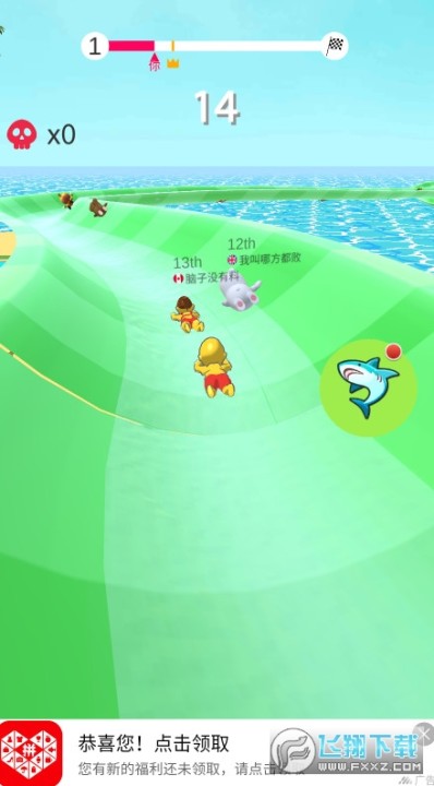 2、下滑过程中撞开其他玩家,飞出轨道走捷径!