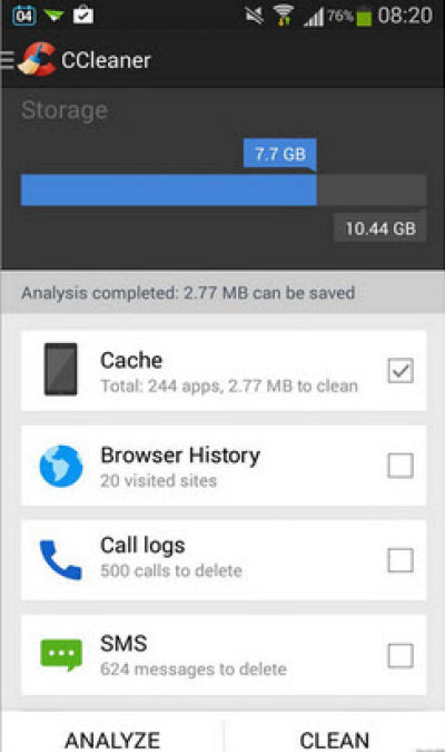 CCleaner可以删除应用程序缓存,浏览器的历史,剪贴板中的内容,旧的通话记录和更多。