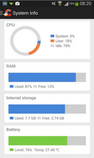 系统监控-检测CPU、RAM、存储空间和电池使用状况