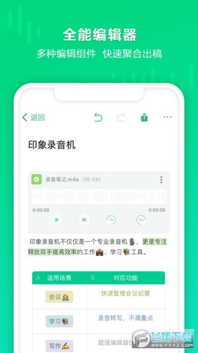 印象录音机不仅仅是一个专业录音机,更是专注释放双手提高专注度的工作、学习提效App。实时录音转写高准确率,同时有多功能编辑器辅助提效,帮助你快速编辑出稿。