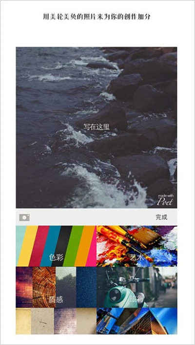 这款Poet相机是一个非常独特的手机拍照工具,大家可以在拍的照片中附加文字和配图,让其变得更加的具有诗情画意,同时还可以分享到社交平台和好友分享,喜欢拍照的朋友切不可错过哦!