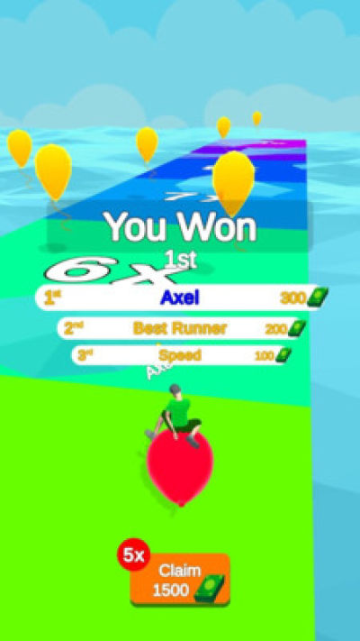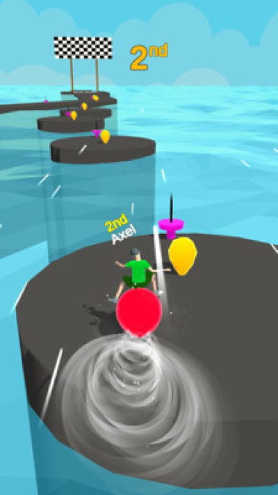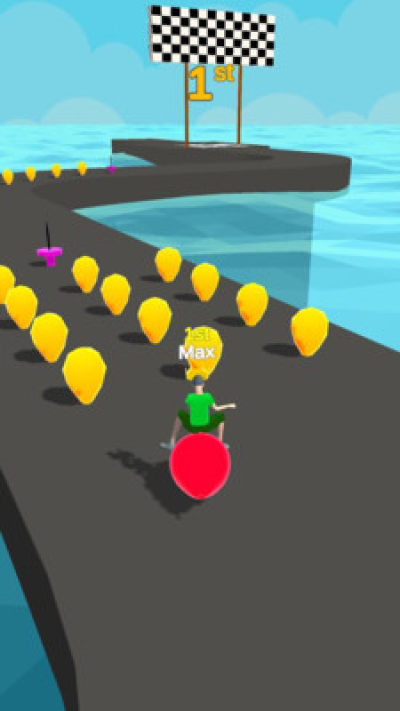 3、收集更多气球可以给自己的球加气,更快的速度冲向终点