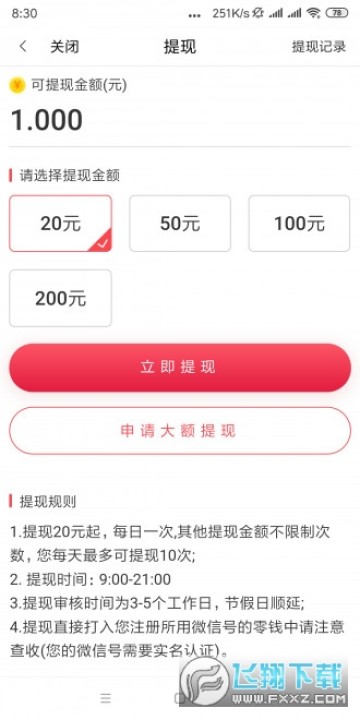 3、白头翁永久满20元起提现,24小时内审核到账,每人每天可多次提现