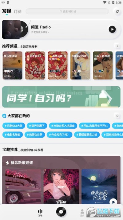 频道自习室功能上线,来喊你的小伙伴一起听歌与学习!