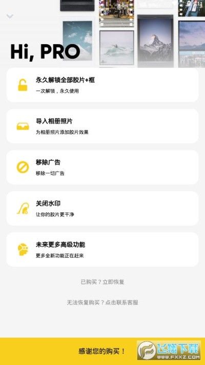 最后一卷胶片永久会员解锁版是一款非常出的特效滤镜相软件,拥丰富的柯达和富士胶片滤镜,带来最具特色的滤镜效果,此版为永久会员解锁版,所有功能免费,去除了广告,更加清爽!喜欢就快来下载吧!
