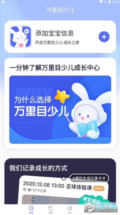 万里目少儿app是一款给3-9岁的儿童打造的手机在线教育早教类的软件,这款软件可以为用户提供相关的早教类的课程,在万里目少儿app上有科学的课程,可以直接在线选课,还能直接约课,也能制作宝宝的成长学习档案哦!