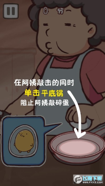 帮助闲蛋哥活下去。游戏中玩家需要在祖母打鸡蛋时,来点击平底锅,帮助闲蛋哥抵御敲击,保证蛋壳不破裂,努力活下去,简单的点击操作,考验玩家的反应能力,不断获取高分,解锁更多内容,更多精彩赶快下载吧!