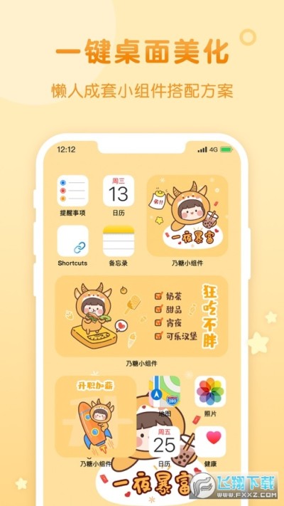 乃糖小组件是一款手机桌面美化APP,提供手机桌面整套搭配方案,有潮流的高清静态、动态壁纸,也有多款不同风格的成套小组件,并可以将你的手机桌面设置为个性化主题,满足个性化需求!