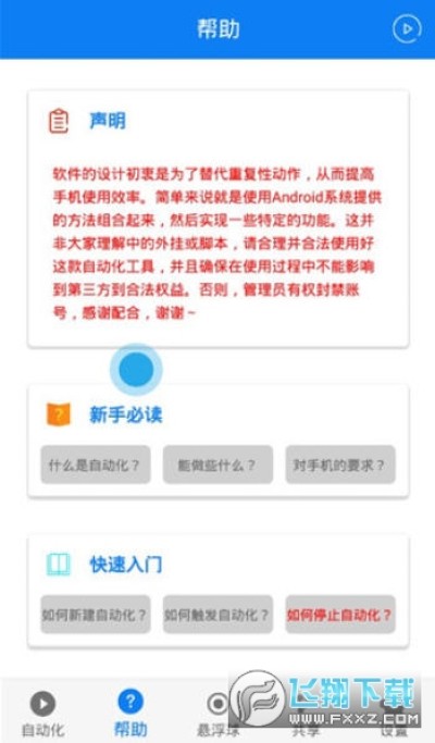 帮助用户在手机上实现一键自动连点的操作,能够大幅度的提升用户使用手机效率,软件功能齐全实用,操作简单,用户可以自定义各种动作组合,然后再保存成为一个脚本,方便下次的使用。