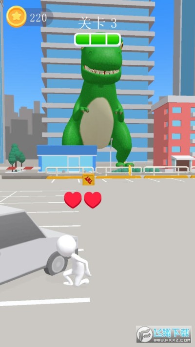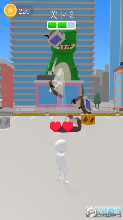 和庞大的恐龙战斗。游戏中玩家操作角色进行战斗,简单的控制操作,不断移动闪避恐龙的攻击,拾取关卡的道具扔向恐龙,丰富的道具效果,考验你的操作和反应能力,努力击败关卡的恐龙,更多精彩赶快下载吧!