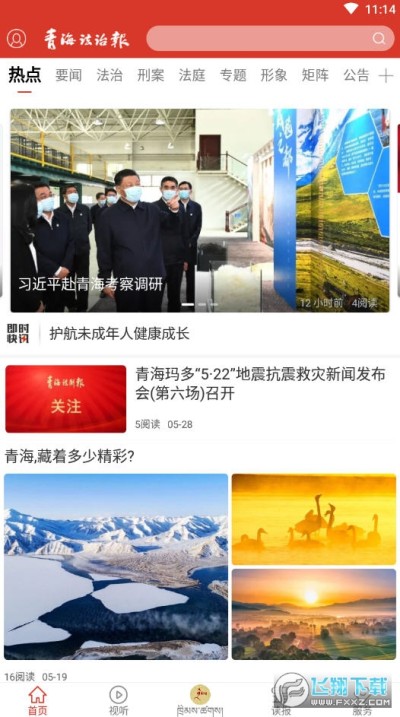 法眼app是由青海法制报推出的手机客户端,这款软件上提供了非常全面及时的社会新闻资讯,还有视频版块,同时法眼app还提供了当地的生活服务功能,用户可以在线办理相关的业务,也能切换成藏文阅读,为不同人群服务!
