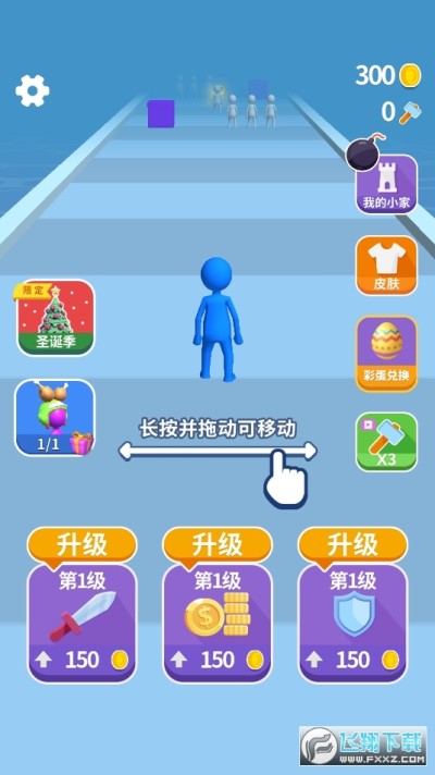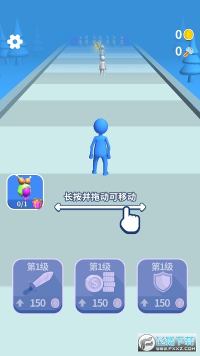 玩家控制的小人会自动前进,玩家可以左右拖动屏幕让小人左右移动。