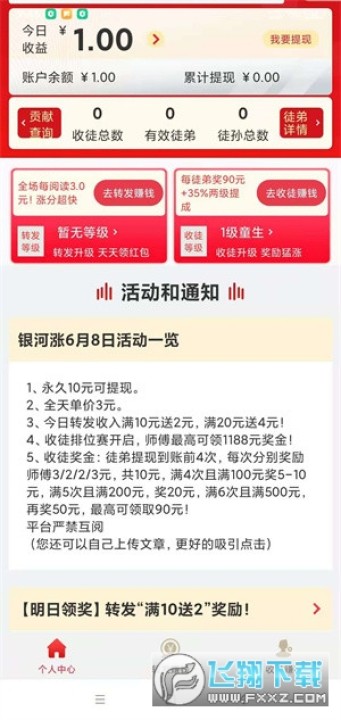 3、银河涨转发平台收益非常可观,而且没有门槛,基本上所有人都能在这里赚钱,超多的福利活动还能让你活动额外现金收益