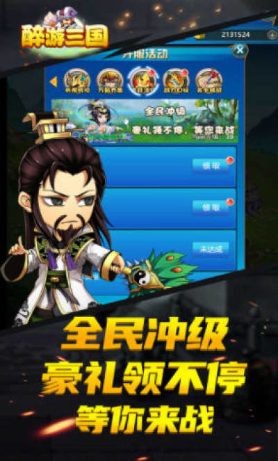 醉游三国超爽版是一款三国题材回合制挂机手游,游戏扮演主公,可以自由收集各种三国武将,合理搭配最强的阵容队伍来攻城略池,称霸三国!喜欢这款游戏的朋友速速来下载吧!