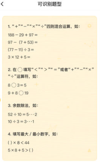 小猿口算现在支持检查以下题型,更多题型敬请期待哦。