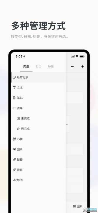 笔记:强大的笔记编辑器,您可以修改文本的样式、插入图片、链接、语音等,并支持多种高亮的文本颜色。