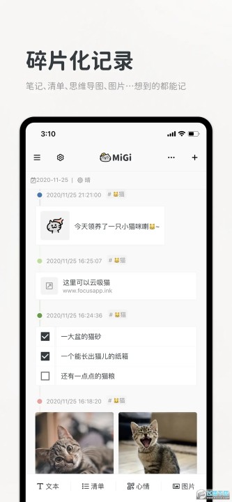 migi笔记app是一款功能强大的便签日记本类记录软件,软件中不管是日常清单还是心情日记都可以一一进行记录,在这里还能插入图片,导入背景音乐以及超链等等,多种功能完美实现!对软件感兴趣的话不妨点击下载试试!