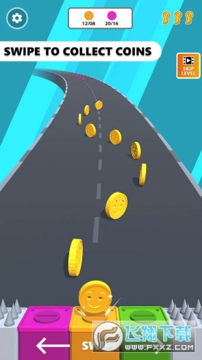 在游戏中玩家要控制三种颜色的硬币,并且要不断的去收集里面有各种颜色的硬币,玩家需要不断的调整位置将硬币收集到对应颜色的盒子中,看起来比较的简单,但是难度会不断的升级,想要获得高分就需要不断的练习。