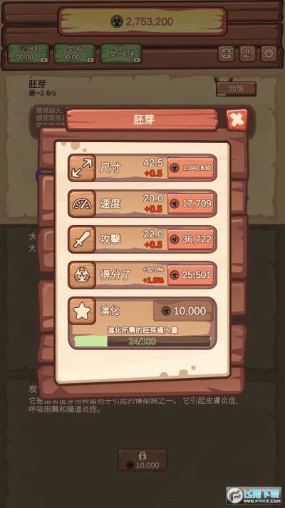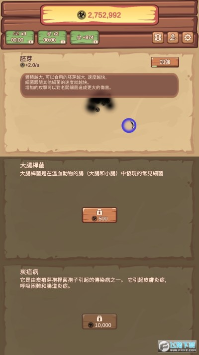 种植胚芽无限生化分数版最新版是一款细菌模拟养成类手游,游戏里玩家可以养成各种细菌,通过吞噬其他的细菌获取生化点数,不断的升级自己的细菌的体积速度,在吞噬一定数量的细菌后还可以进化出更强大的细菌,在游戏的同时还可以了解各种知识!