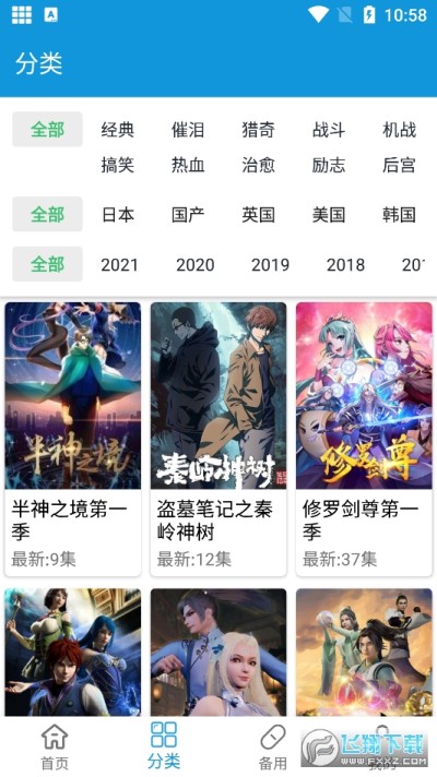 3、分类功能:根据类型、地区、风格、年份等直接搜索到属于你的动漫