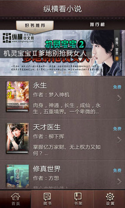 这款纵横看小说是纵横中文网推出的一款手机客户端软件,拥有数万签约作者的玄幻、武侠、言情和穿越等精品原创小说。这款小说阅读器界面精美,功能强大,其云端同步阅读记录和书架管理功能将带给大家不一样的阅读体验,喜欢看小说的朋友切不可错过哦!