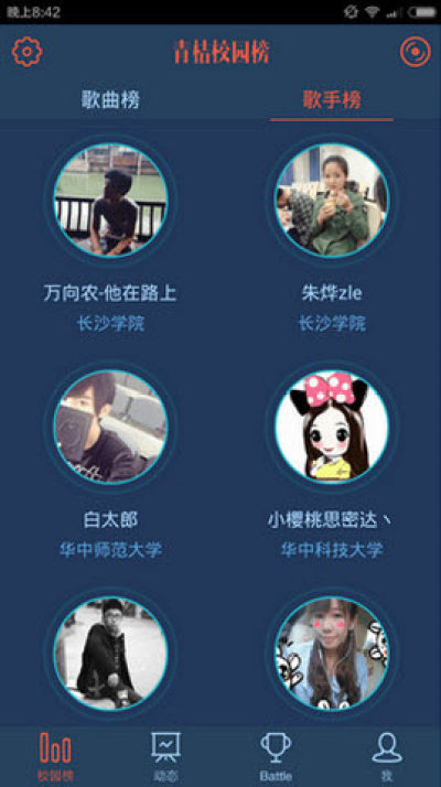 青桔音乐是一个校园音乐社区,大家不仅可以在这里关注自己喜欢歌手的最新动态,同时还可以一展歌喉和好友PK,这里是广大音乐爱好者的聚集地,喜欢音乐的朋友快加入进来吧!