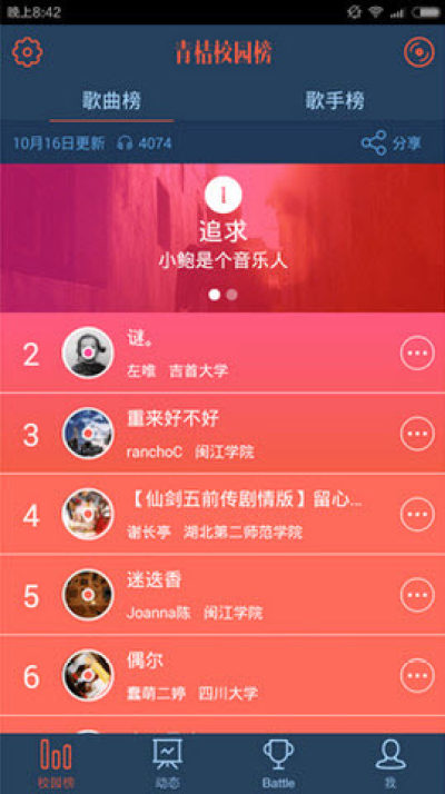 4、报名参加青桔百佳歌手评选,为心目中的校园音乐人投票加油。