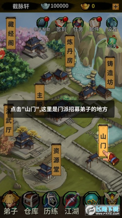 弟子在门派内可自由安排行程,是修炼武学、采石伐木,还是研习阵法,外出游历,甚至是偷懒摸鱼,一切均掌门您决断!