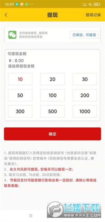 3、如意头条满10元起提现到微信钱包,首次提现秒到,后续24小时到账,每人每天限提一次