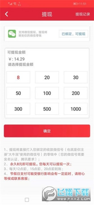 3、大牛头条首提8元秒到账,后续永久8元提现,24小时内审核到账,每人每天限提一次